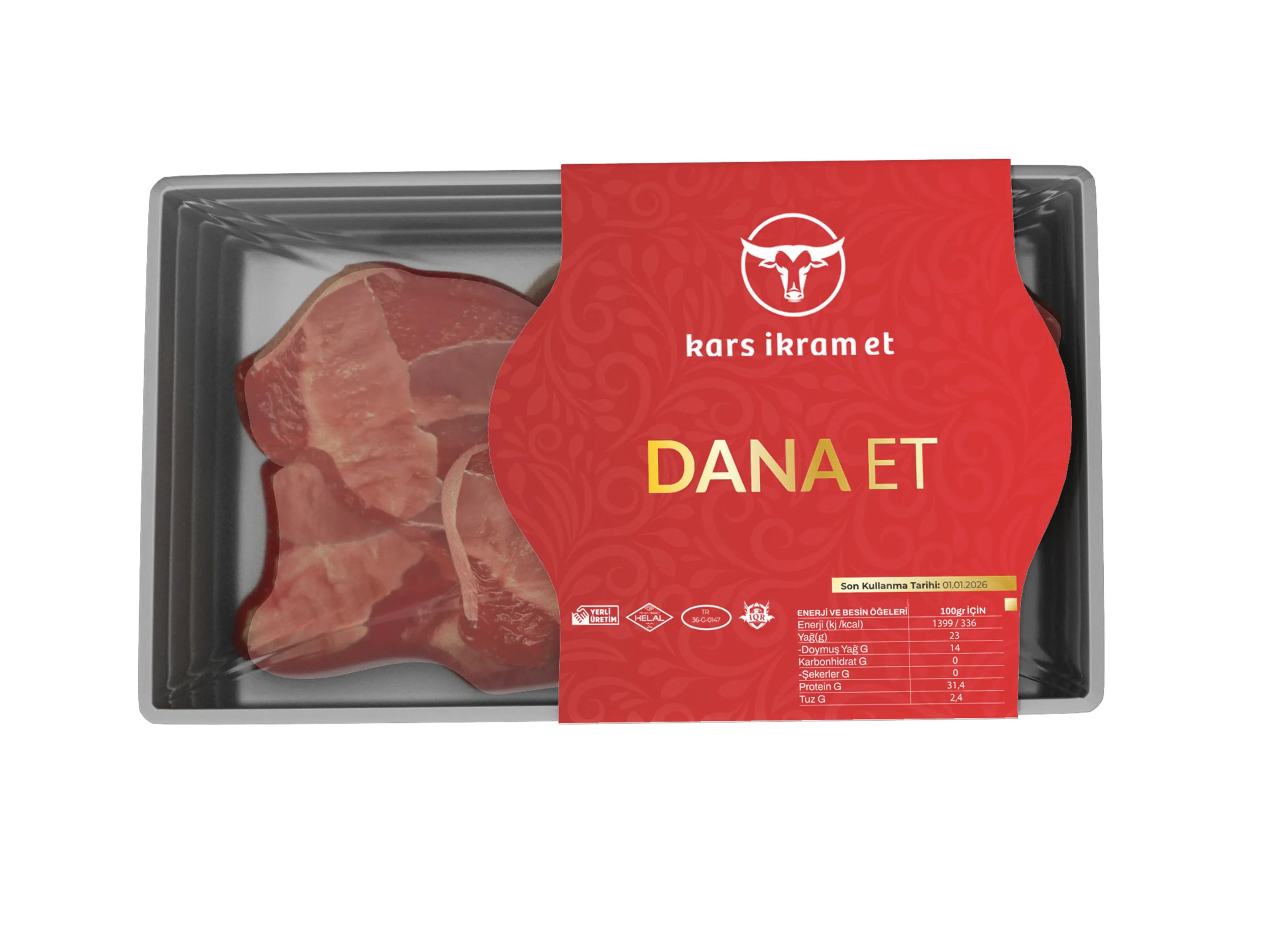 Kars İkram Et’in özenle seçilmiş dana etleri, sofralarınıza taptaze ve güvenilir lezzet getiriyor. Hijyenik koşullarda paketlenen ürünümüz, hem günlük yemeklerinizde hem de özel davet sofralarınızda en kaliteli et deneyimini sunar.